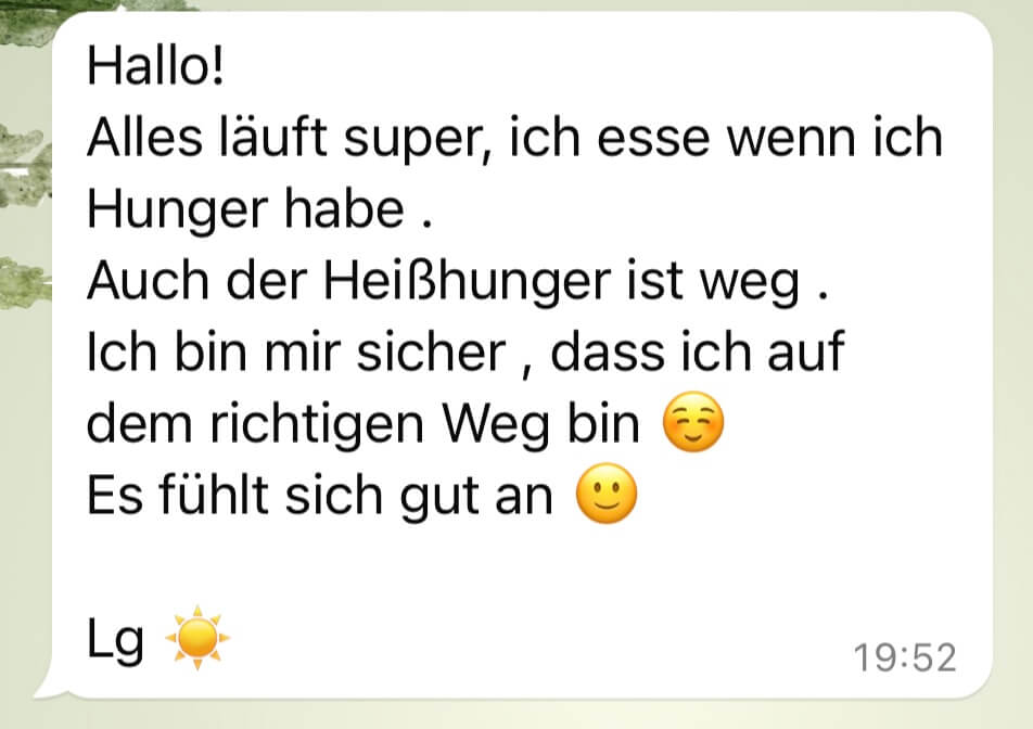 Du holst dir deine natürliche Hunger- und Sättigungswahrnehmung zurück und vertraust deinem Körper wieder, statt ihn zu kontrollieren.